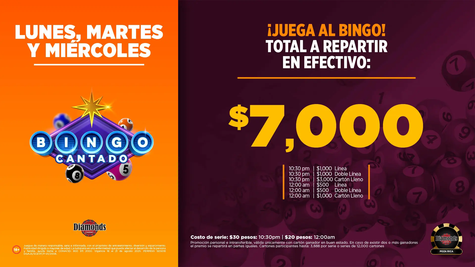 JUEGUE DE MANERA RESPONSABLE, SANA E INFORMADA, ÇON EL PROPÓSITO DE ENTRETENIMIENTO, DIVERSIÓN Y ESPARCIMIENTO. PUBLICIDAD DIRIGIDA A MAYORES DE EDAD. LA LUDOPATIA ES UNA ENFERMEDAD QUE PUEDE AFECTAR EL DESARROLLO DE LA PERSONA Y FAMILIA. AYUDA LLAME A CONACID: 800 911 2000. http://www.juegosysorteos.gob.mx/es/Juegos_y_Sorteos/Atencion_al_Ludopata